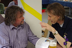 Etwa 70 Mitglieder, Ehemalige und Freunde der Tischtennis-Abteilung fanden sich zum Jubiläumsabend im Foyer der Bodanrückhalle ein. Bereits beim Sektempfang wurden alte Bekanntschaften erneuert und neue Bekanntschaften geschlossen. Alle Altersstufen aus den vergangenen 50 Jahren waren an diesem Abend vertreten. Als Ehrengäste gaben sich der Allensbacher Bürgermeister, Stefan Friedrich, der Vorsitzende des Tischtennisbezirks Bodensee, Gerold Ehinger, der kommissarische 1. Vorsitzende des SV Allensbach, Uli Haaf, sowie der Ehrenpräsident des Sportvereins, Kurt Geisenberger die Ehre und überbrachten die Glückwünsche der Gemeinde, des Bezirks und des SV Allensbach. Dabei wurde immer wieder der besondere Zusammenhalt der Abteilung, der sich auch an diesem Abend wieder zeigte, gelobt. Nachdem Abteilungsleiterin Christiane Treffler das Buffet eröffnete und sich alle ausreichend gestärkt hatten, wurden die Helden des Tischtennis-Turniers im würdigen Rahmen geehrt. Jeder erhielt eine Urkunde und die ersten vier Mannschaften sogar Pokale (als Wanderpokal, der beim 100jährigen Jubiläum verteidigt werden muss). Auch für die weitere Unterhaltung hatte das Organisationskommitee (Bodo Finkernagel, Egbert "Zapfä" Karrer, Christoph Pesch, Christian Schmidt, Christiane Treffler, Reni und Horst Wedele) gesorgt. Jeder Gast bekam ein Exemplar der frisch gedruckten Festschrift zum Jubiläum, und so manch einer schmökerte voller Interesse in der Mischung aus informativen, lustigen, alten und neuen Beiträgen. Alte Exponate (Pokale, alte Spielerpässe, Gedichte von Nikolausfeiern) wurden zusammengetragen und ausgestellt. Wer wollte, konnte gegen einen Unkostenbeitrag ein Jubiläums-Handtuch, -T-Shirt oder -Sweatshirt zur Erinnerung bestellen. Viel Gelächter und gute Laune erzeugten schließlich Filme von Jugend-Freizeiten und den "Spiele ohne Grenzen" aus den Jahren 1991 und 1992. Bei manchen weckten sie alte Erinnerungen und bei anderen den Gedanken: "Das könnten wir doch mal wieder machen". Der Jubiläums-Abend wurde dann nach einem wunderschönen Sonnenuntergang zu einer Jubiläums-Nacht und einem fröhlichen Jubiläums-Morgen, bevor auch die letzten gut gelaunt nach Hause gingen. Am Ende bleibt die Erinnerung an einen wunderbaren Tag, das Treffen mit guten alten und neuen Freunden und Bekannten, und einmal mehr die Erkenntnis, dass diese Abteilung es wert ist, weitere 50 Jahre unterstützt und lebendig gehalten zu werden.