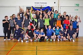 Vor 50 Jahren, im Jahr 1967, wurde die Abteilung Tischtennis in den Sportverein Allensbach aufgenommen. Um diese 50 Jahre zu würdigen, lud die Tischtennis-Abteilung aktuelle und ehemalige Aktive, sowie Freunde und Wegbegleiter der Abteilung zu einem Jubiläumsfest am 20.05.2017 ein. Der Tag wurde morgens mit einem launigen Turnier eröffnet. Unter der Leitung von Jugendleiter Christoph Pesch und Sportwart Bodo Finkernagel wurden die Teilnehmer in Zweiermannschaften gelost. Alt und Jung, Anfänger und Fortgeschrittene, Klein und Groß wurden durcheinandergemischt, so dass viele interessante Paarungen entstanden. Nachdem sich jede der 14 Zweier-Mannschaften einen Namen (z.B. "Die Dinos", "Die Flitzer" oder "Trio Infernale") gegeben hatte, wurde um die Punkte gerungen. Dabei zeigten besonders die Ehemaligen, was sie noch draufhaben. Einige spürten dafür am Ende nach 7 Stunden Tischtennis aber auch Muskeln, deren Existenz sie schon lange vergessen hatten. Trotz allen Ehrgeizes standen die gute Laune und das Wiedersehen guter, alter Bekannter im Vordergrund. Die ausgeglichenste Mannschaft, "La(h)ma", (Lars Pohl und Mathias Moser) konnte schließlich das Endspiel gegen "Die Namenlosen" (Judith Eichenauer-Moser und Christian Kamm) für sich entscheiden. Nach einer ausgiebigen Dusche und etwas Erholung für die müden Sportler konnte dann der gemütliche Teil des Jubiläums begonnen werden.